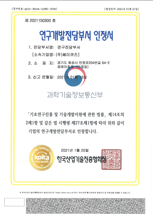 연구개발전담부서인정서