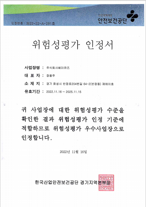 위험성평가 인정서